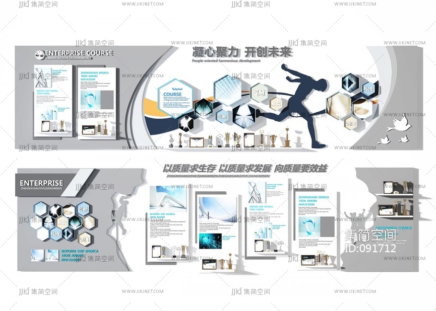 现代企业荣誉文化墙,宣传栏 3d模型下载 [模型ID:91712]