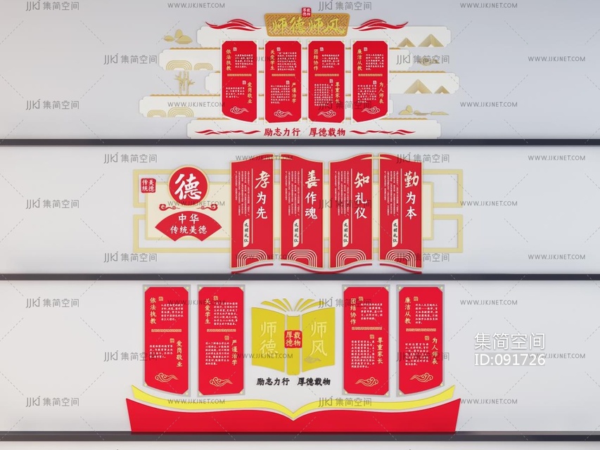 现代简约文化墙_党建文化墙3D模型3d模型下载