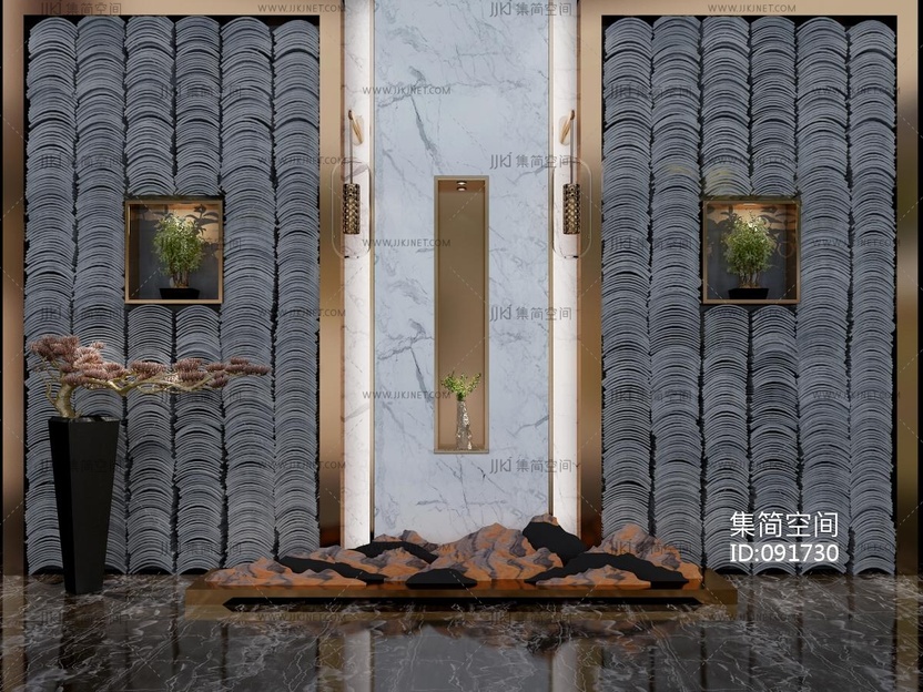 中式瓦片造型背景墙 3d模型下载 [模型ID:91730]