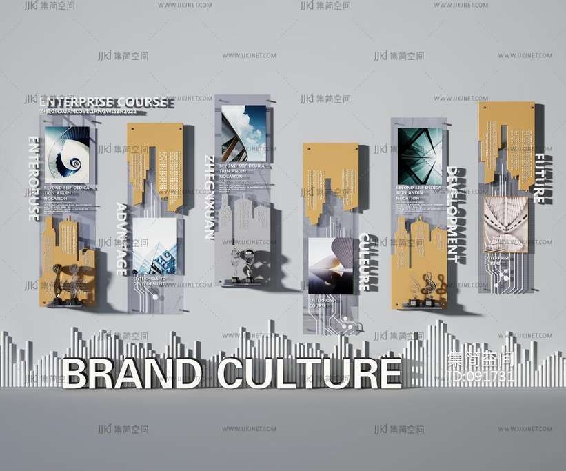 现代企业文化墙,宣传栏 3d模型下载 [模型ID:91731]