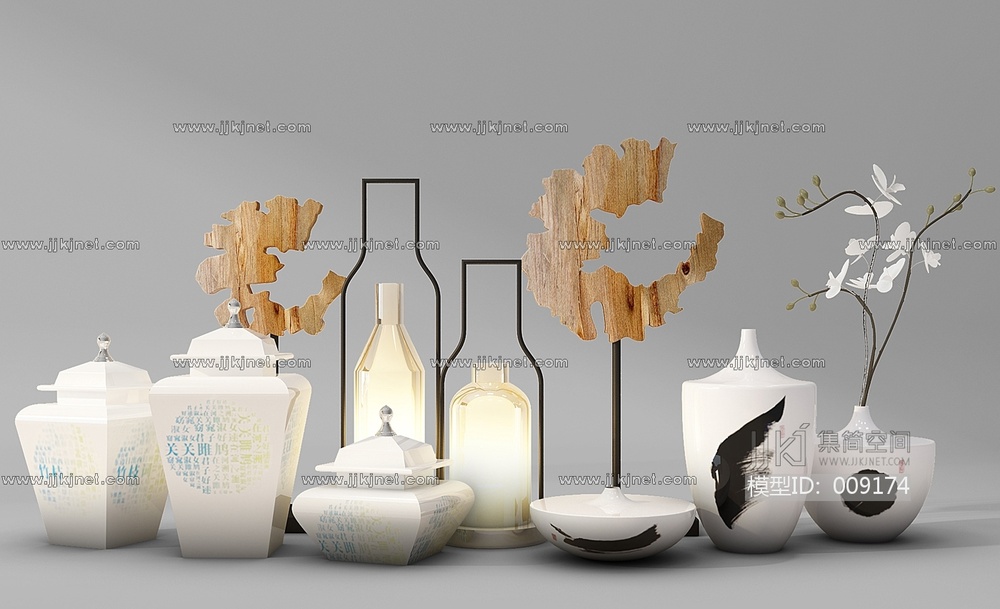 现代新中式雕塑摆件_饰品摆件组合3D模型3d模型下载