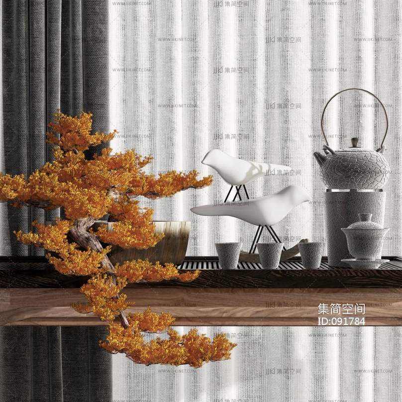 新中式松树盆景茶具摆件 3d模型下载 [模型ID:91784]
