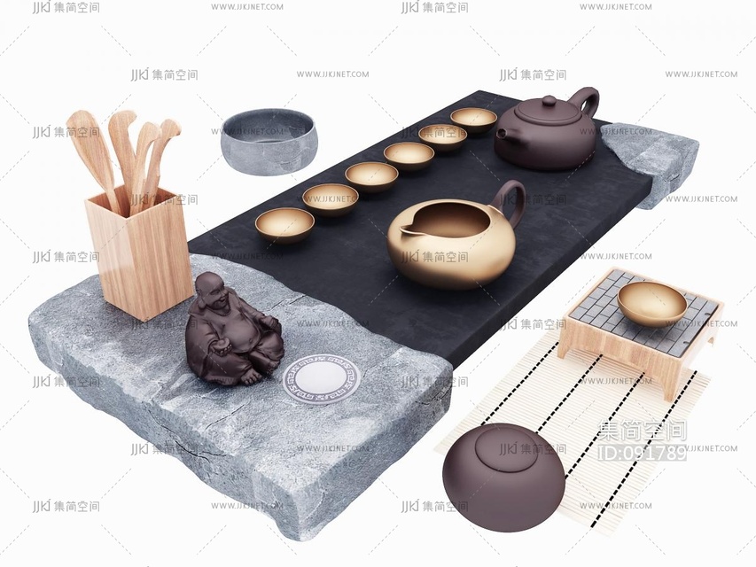 新中式茶盘茶具 3d模型下载 [模型ID:91789]