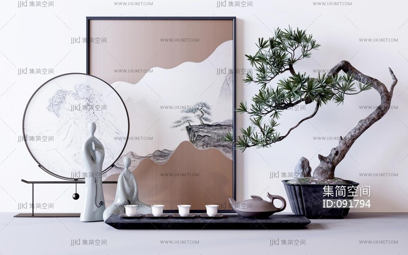 新中式禅意茶具盆栽摆件 3d模型下载 [模型ID:91794]
