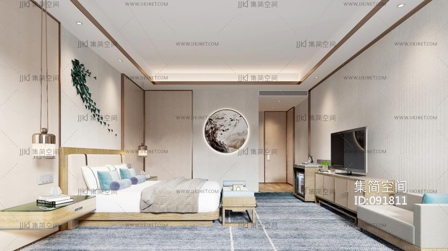 新中式酒店客房 3d模型下载 [模型ID:91811]