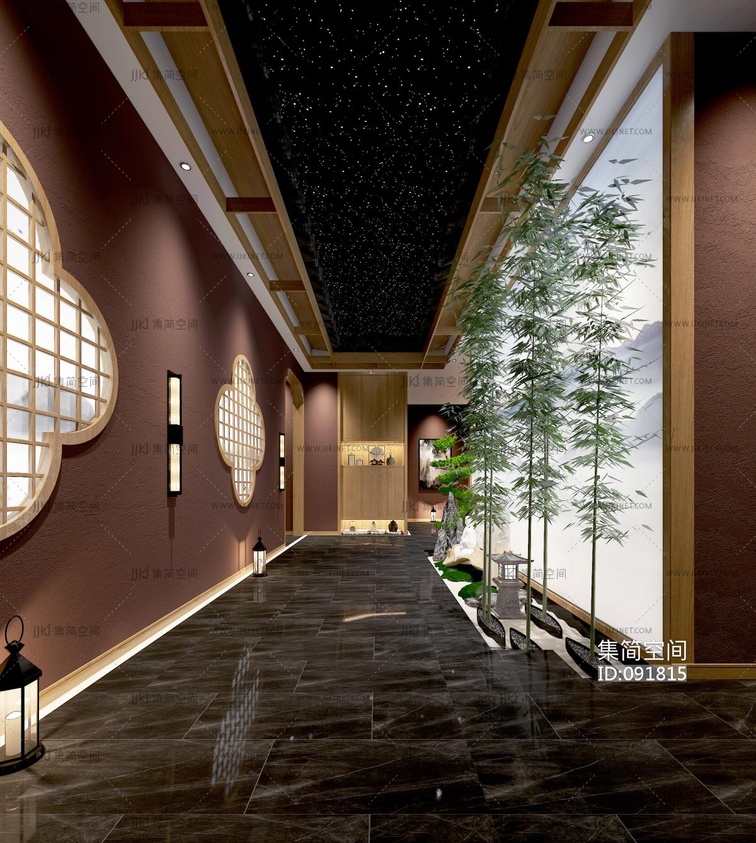 新中式酒店会所走廊 3d模型下载 [模型ID:91815]