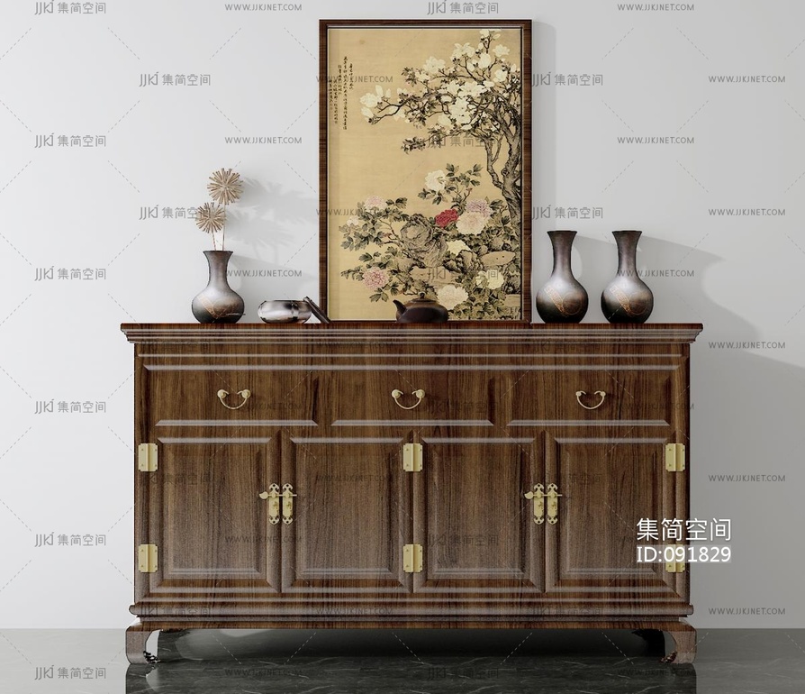 中式餐边柜 3d模型下载 [模型ID:91829]