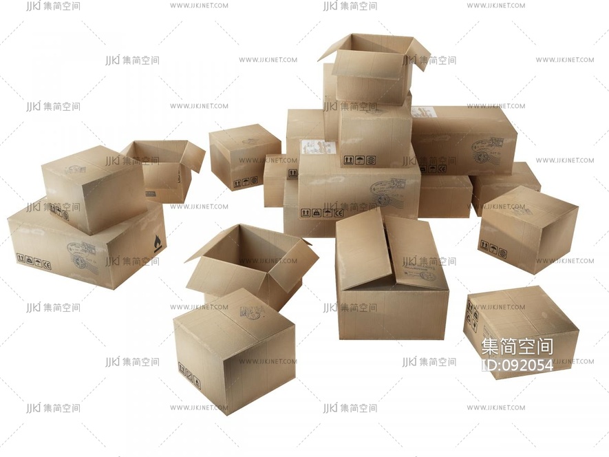 现代牛皮纸箱,纸箱子,包装箱 3d模型下载 [模型ID:92054]