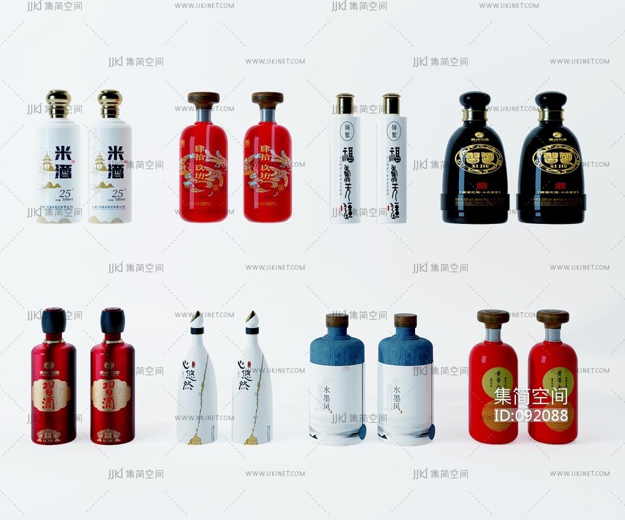 新中式白酒,酒瓶子 3d模型下载 [模型ID:92088]