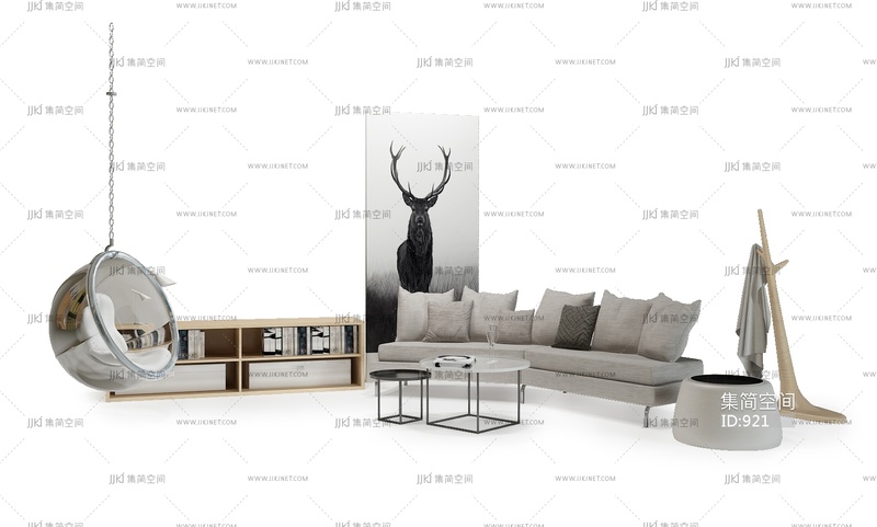 03-奶油中古沙发组合_沙发茶几组合_异形沙发_金属茶几_单人休闲椅_模块沙发3D模型3d模型下载