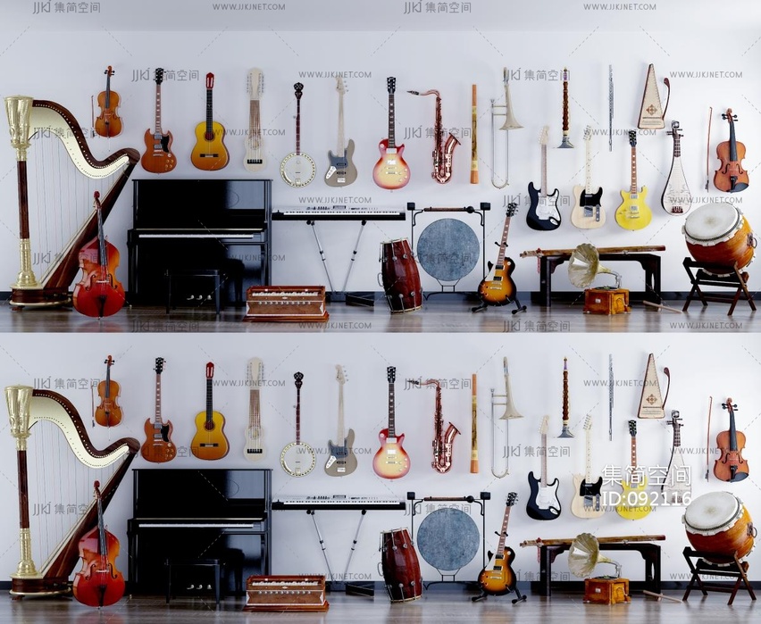 现代乐器组合 3d模型下载 [模型ID:92116]