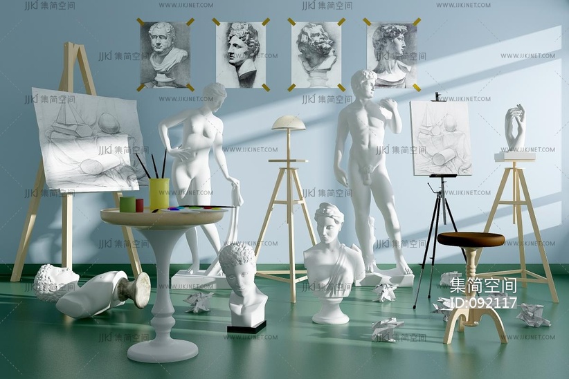 现代画室人物雕像,画板, 3d模型下载 [模型ID:92117]