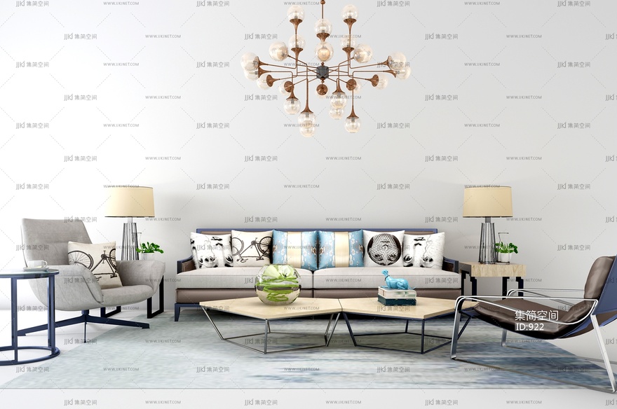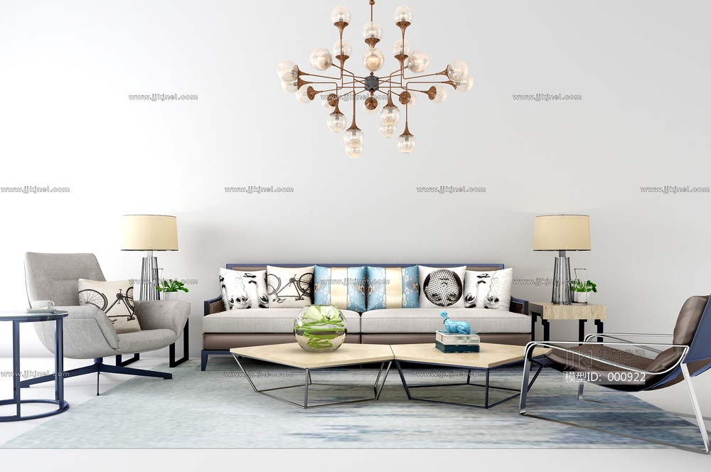 026现代沙发组合 3d模型下载 [模型ID:922]