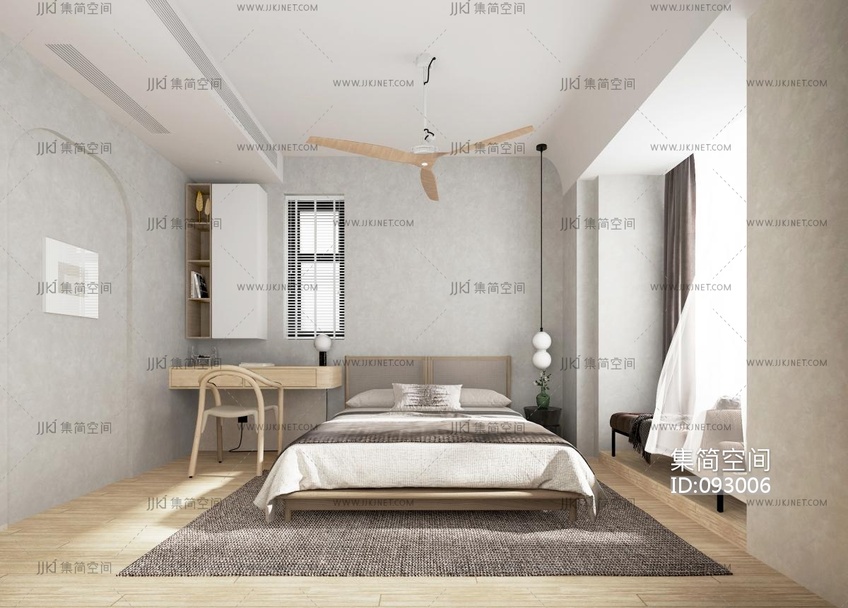 6法式中古家居卧室_主卧_飘窗卧室_高级灰卧室3D模型cr3d模型下载