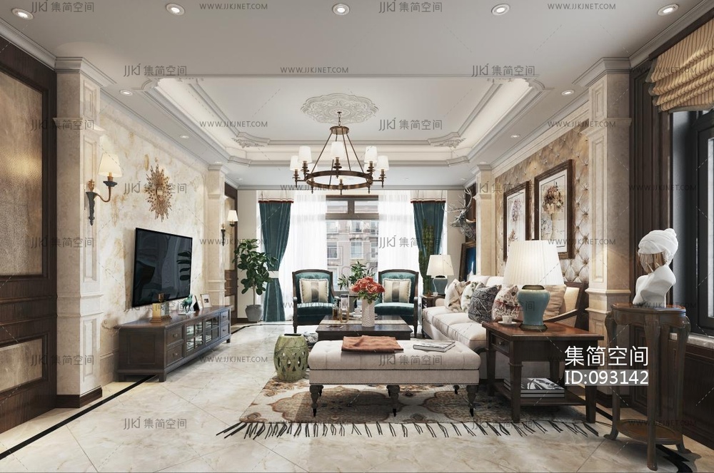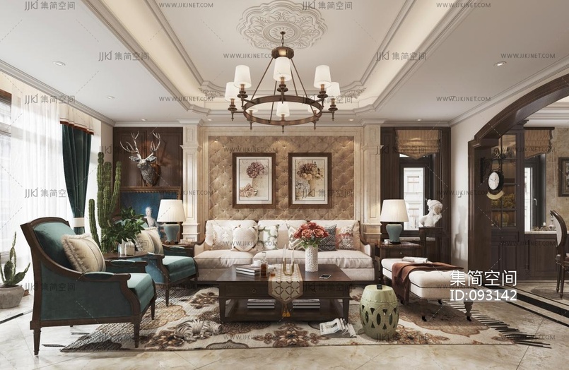 美式客厅 3d模型下载 [模型ID:93142]