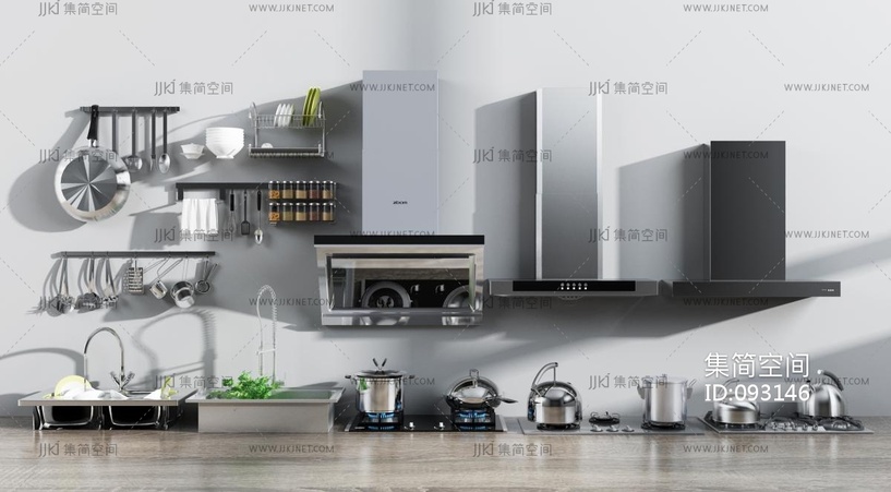 现代油烟机,燃气灶,厨房用品 3d模型下载 [模型ID:93146]