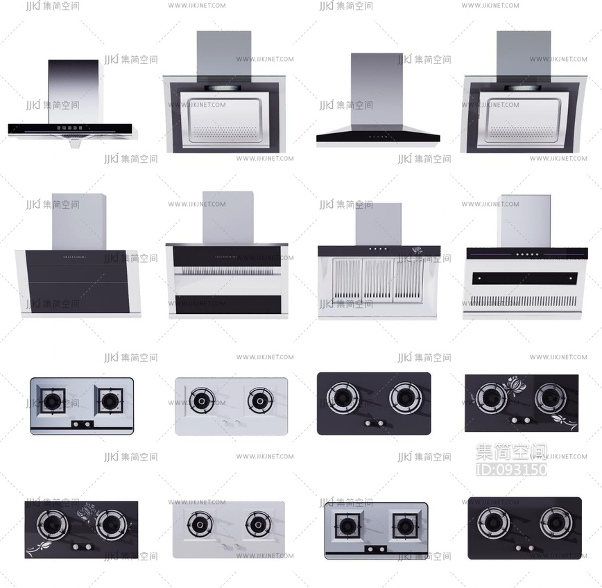 现代吸油烟机,燃气炉 3d模型下载 [模型ID:93150]