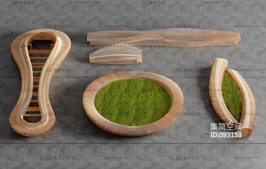 北欧户外木质公用椅 3d模型下载 [模型ID:93153]