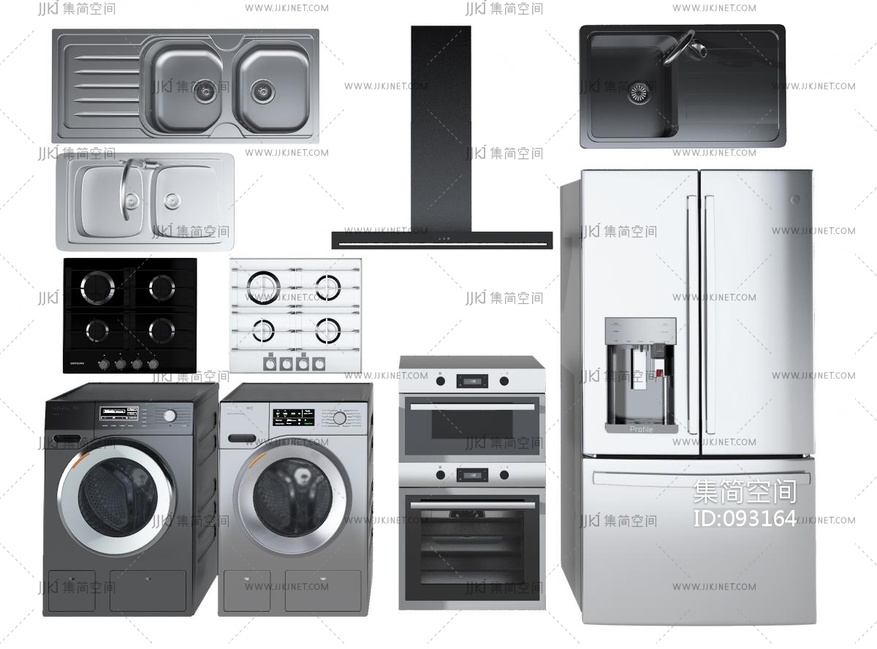现代冰箱,煤汽灶,滚筒洗衣机家用电器组合 3d模型下载 [模型ID:93164]