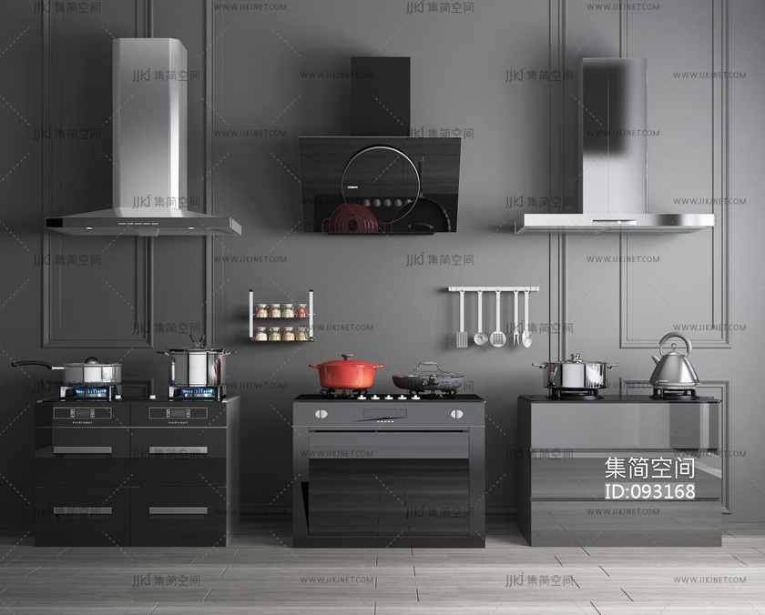 现代厨房吸油烟机,集成炉灶,厨房用品 3d模型下载 [模型ID:93168]