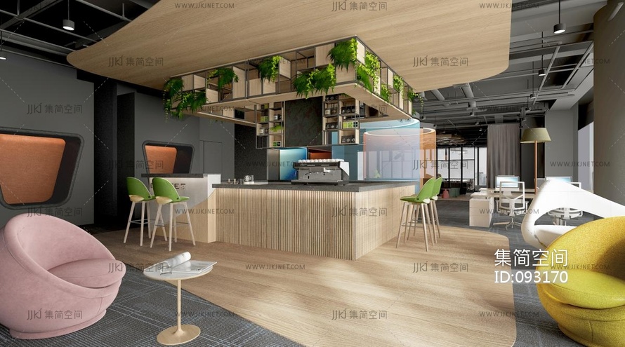 工业风办公休闲区 3d模型下载 [模型ID:93170]