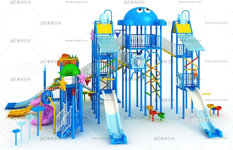 现代儿童娱乐器材设备,滑梯 3d模型下载 [模型ID:93177]