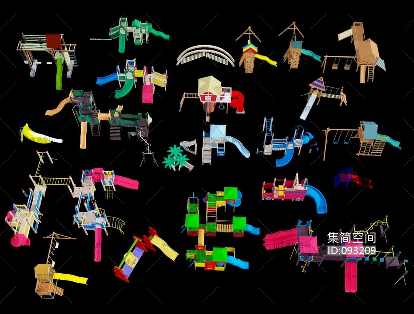 现代儿童游乐设备,滑梯组合 3d模型下载 [模型ID:93209]