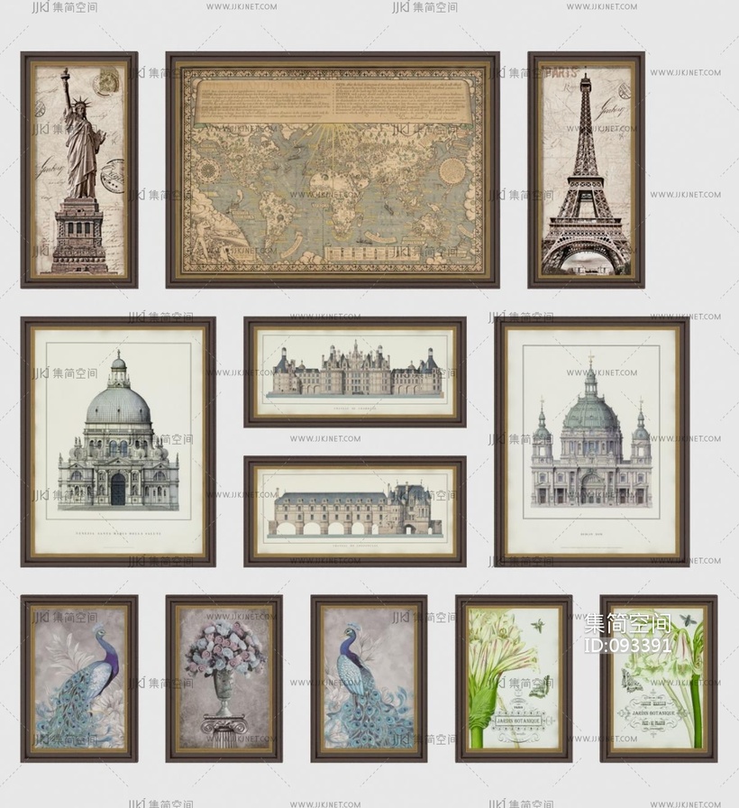 法式中古挂画_装饰画_组合3D模型3d模型下载
