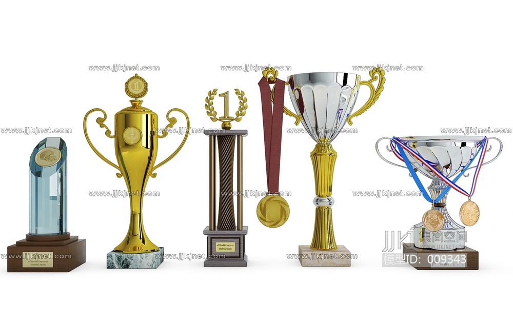 H29-0919现代奖杯奖牌组合 3d模型下载 [模型ID:9343]