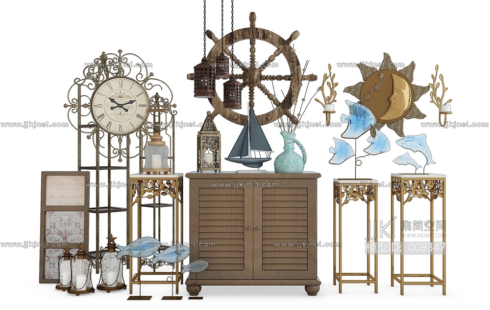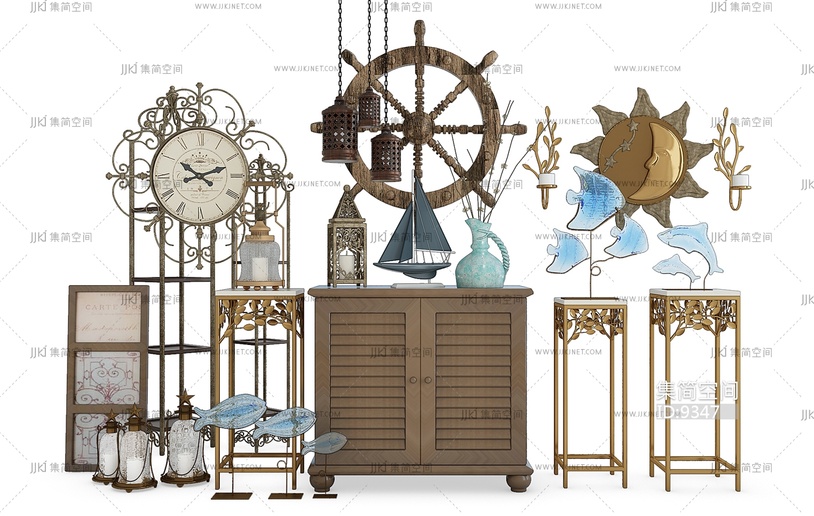 H36-0919地中海陈设物品装饰落地灯船桨 3d模型下载 [模型ID:9347]
