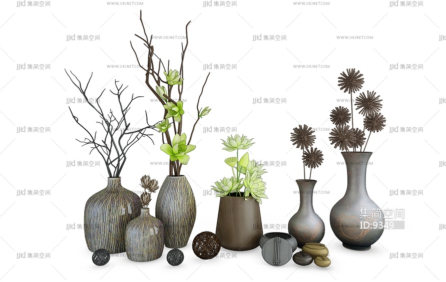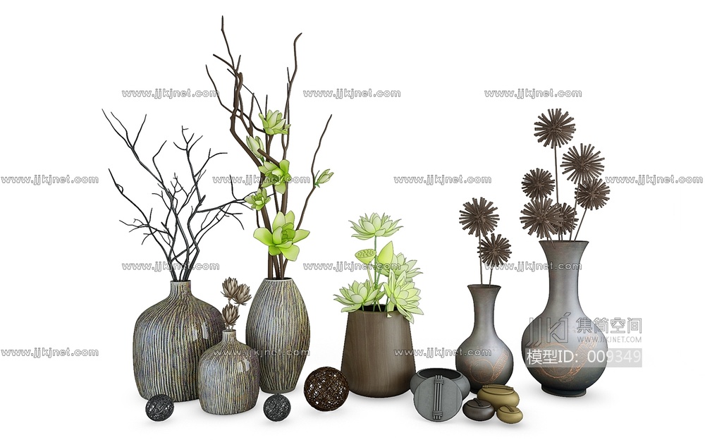 H38-0919中式花瓶装饰干枝 3d模型下载 [模型ID:9349]