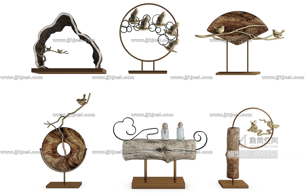 现代新中式雕塑摆件_饰品摆件组合3D模型3d模型下载