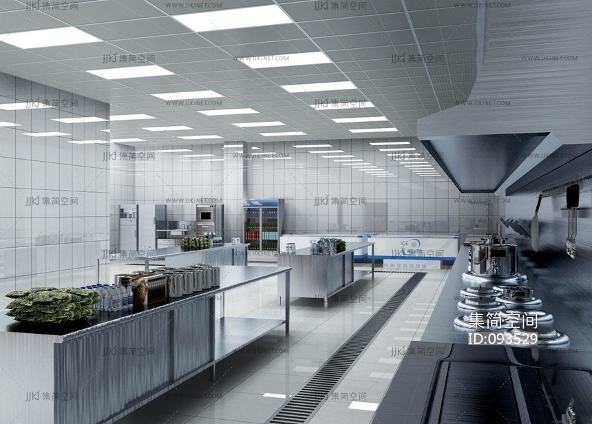 现代酒店中央厨房后厨 3d模型下载 [模型ID:93529]