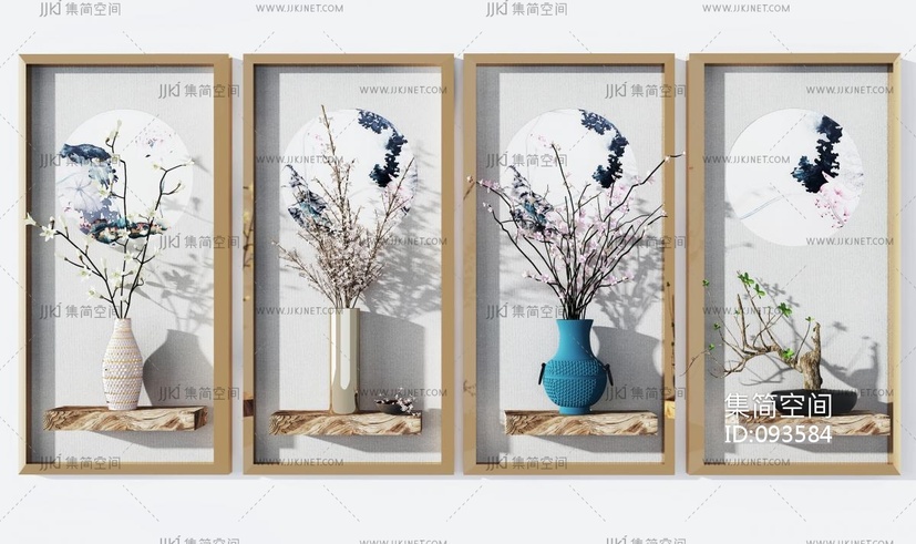 新中式陶瓷花瓶花艺摆件 3d模型下载 [模型ID:93584]
