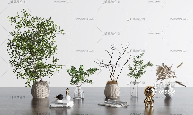 现代绿植,枯枝花瓶装饰品摆件 3d模型下载 [模型ID:93586]