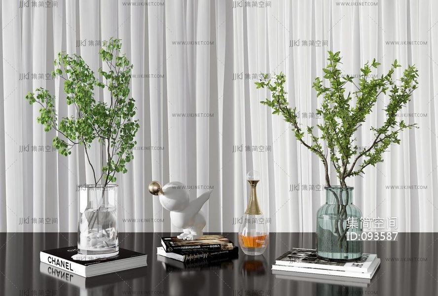 现代水生绿植玻璃花瓶,装饰摆件 3d模型下载 [模型ID:93587]