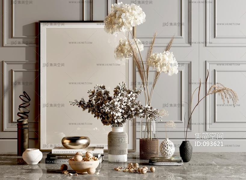 复古法式摆件组合_绿城玫瑰园会所_端景台_花艺_屏风3D模型3d模型下载