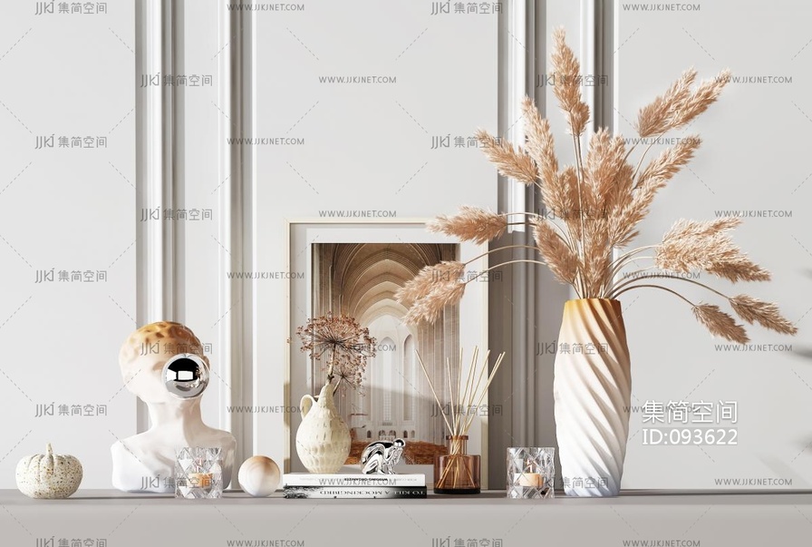 现代干花花瓶雕塑,插花摆件 3d模型下载 [模型ID:93622]