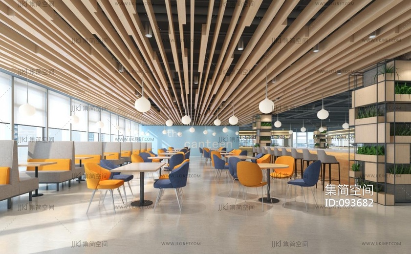 北欧现代餐厅,员工餐厅 3d模型下载 [模型ID:93682]