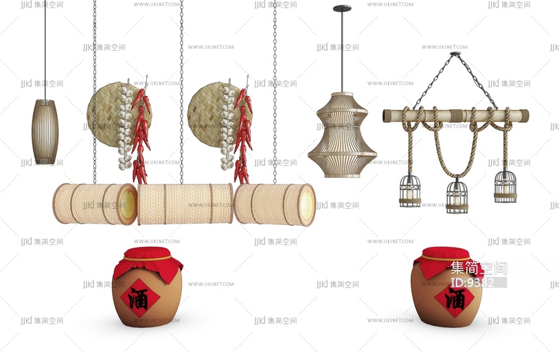 H08-0928麻绳编织吊灯酒缸农家乐 3d模型下载 [模型ID:9382]