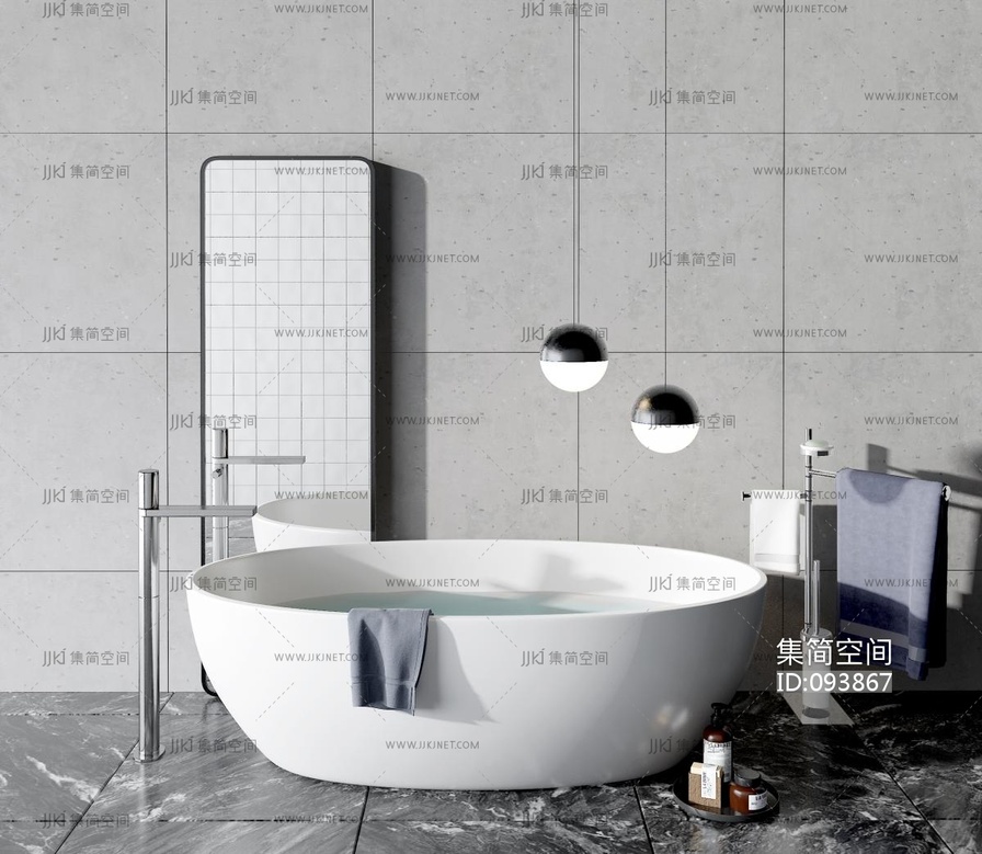 现代浴缸,洗浴用品组合 3d模型下载 [模型ID:93867]