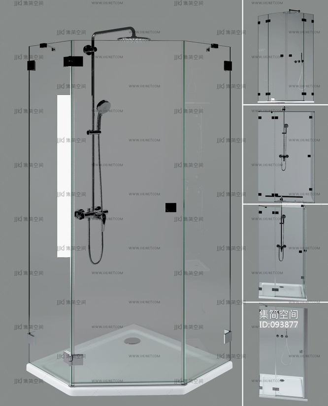 现代玻璃淋浴房,花洒 3d模型下载 [模型ID:93877]