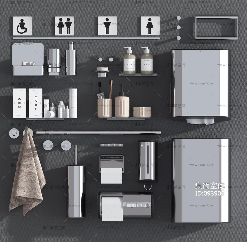现代手纸盒,毛巾浴室架,洗漱用品组合 3d模型下载 [模型ID:93906]
