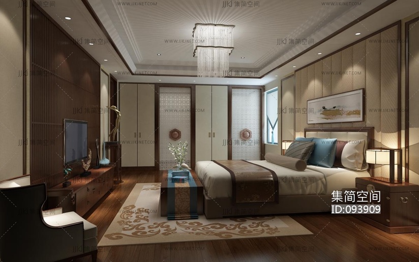卧室,轻奢,暗黑风,现代轻奢卧室双人床,懒人沙发法式卧室3d模型下载