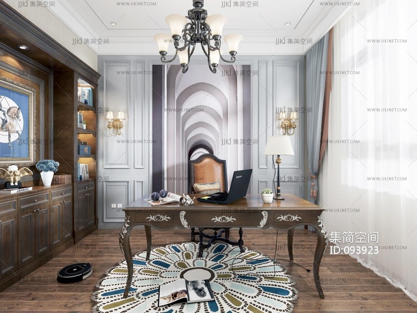 现代书房 书桌椅 壁柜 挂画 吊灯 书 盆栽 摆件3d模型下载