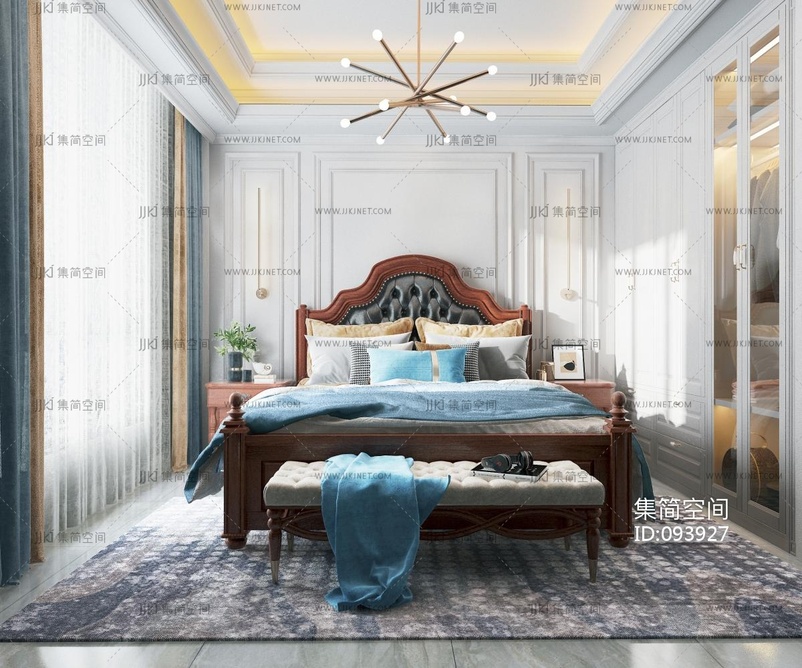 欧式轻奢卧室 3d模型下载 [模型ID:93927]