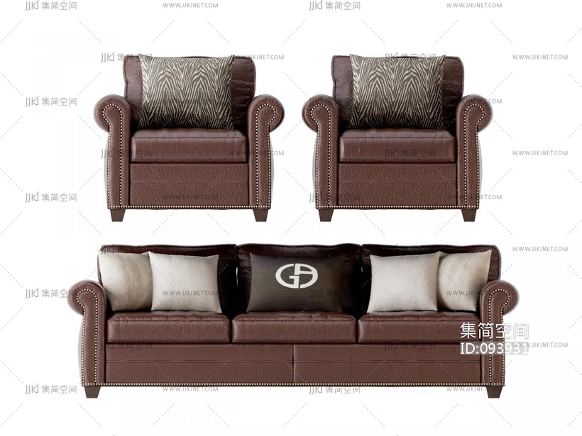 美式皮革沙发组合 3d模型下载 [模型ID:93931]