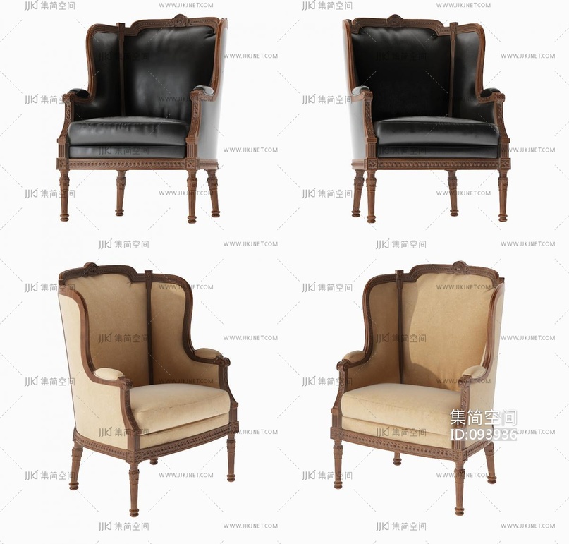 欧式法式美式扶手椅,单椅,椅子3D模型3d模型下载