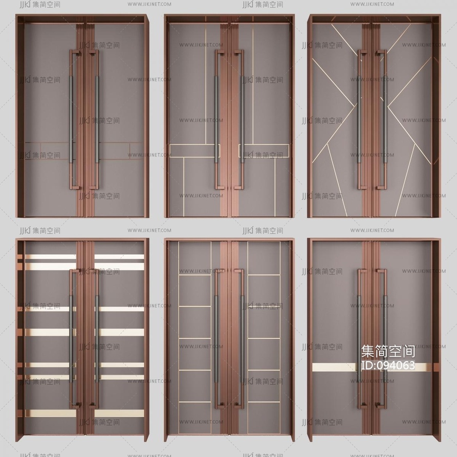 新中式单开门入户门_子母防盗门3D模型3d模型下载