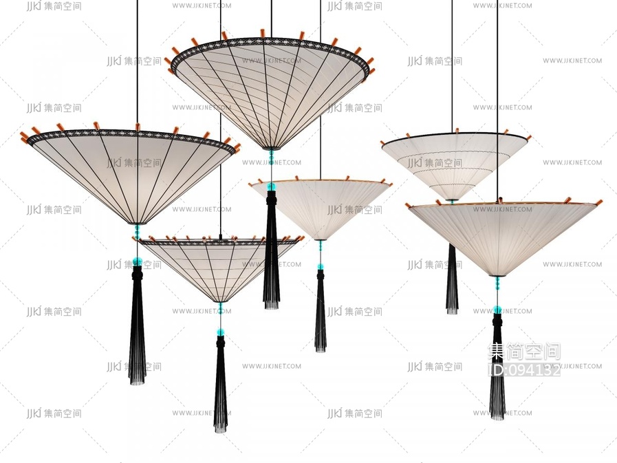 新中式流苏油纸伞吊灯 3d模型下载 [模型ID:94132]